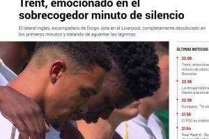 《马卡报》表示:皇马vs多特赛前也进行了令人动容的默哀仪式,镜头聚焦在若塔的前队友阿诺德身上,后者怀着沉重的心情参加这场1/4决赛。镜头中看到,阿诺德的脸上写满了悲痛,他似乎沉溺其中,努力强忍泪水。最后他捂住脸、望向天空,做了最后的祈祷,与若塔和他的兄弟告别。